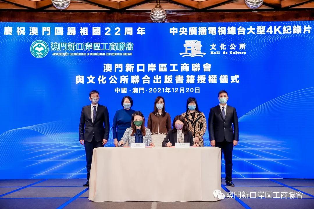 在活动主礼嘉宾的见证下,澳门新口岸区工商联会作为总台《澳门之味》音像制品、图书出版发行的海外受权方,与澳门广播电视股份有限公司、澳门文化公所分别签署了电视播出及联合出版书籍的授权协议。