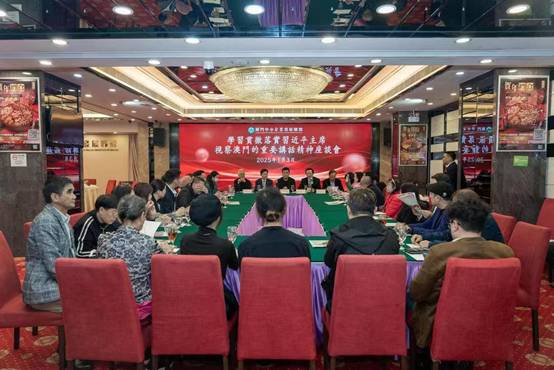 2025年3月21日,澳门中小企业发展联盟,在富豪海鲜酒家举行【两会精神传达会】,由澳区全国人大代表团团长刘艺良,澳区全国人大代表容永恩,澳区全国政协常委、澳门特区立法会议员何润生主讲,澳门中联办经济部副处长张冠宇、澳门中小企业发展联盟会长叶绍文、理事长胡达忠、监事长马建章及该会会员60余人参加,会议由副会长黄义满主持。