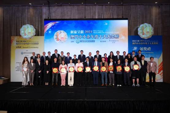 澳门中小企业发展联盟主办、新濠博亚娱乐支持的“澳门中小企二零二四年度十大光荣榜”颁奖礼于2024年12月13日在新濠天地举行,一百五十家中小企业符合提名资格,十一家企业获奖。主办方期望藉着活动激发更多中小企业的创新活力,促进澳门经济多元化和可持续发展。也希望通过这一平台,加强中小企业间的交流与合作,共同推动经济繁荣发展。